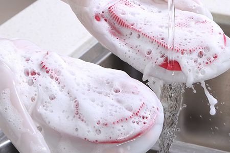 硅膠手套在人們?nèi)粘I钪杏质且粋€應(yīng)用非常廣泛的領(lǐng)域,它除了具有防燙、保溫、耐高溫等功能外,還可以用來清洗餐具、廚具以及其它家務(wù)活的清潔,而且還可以起到勞動保護(hù)的作用。有些特制的硅膠手套,在手掌內(nèi)側(cè)采用毛刺形狀設(shè)計,不僅可以把掉下來的頭發(fā)卷起來,還可以用來為寵物或嬰兒搓澡,非常實(shí)用。